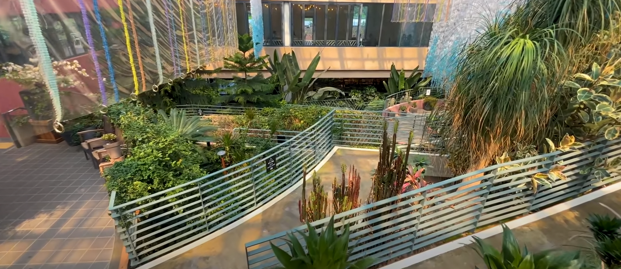 건물들이 만들어 낸 미음자 중정에 온실돔을 설치하여 실내식물원을 만들었습니다.