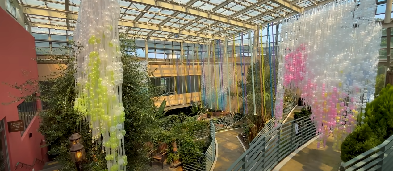 온통 초록인 공간에 오가닉스페트럼 작품을 설치하여 황홀경이 펼쳐집니다.