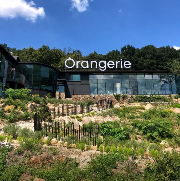 계곡과 자연을 카페에 담아낸 대형온실카페 오랑주리입니다.