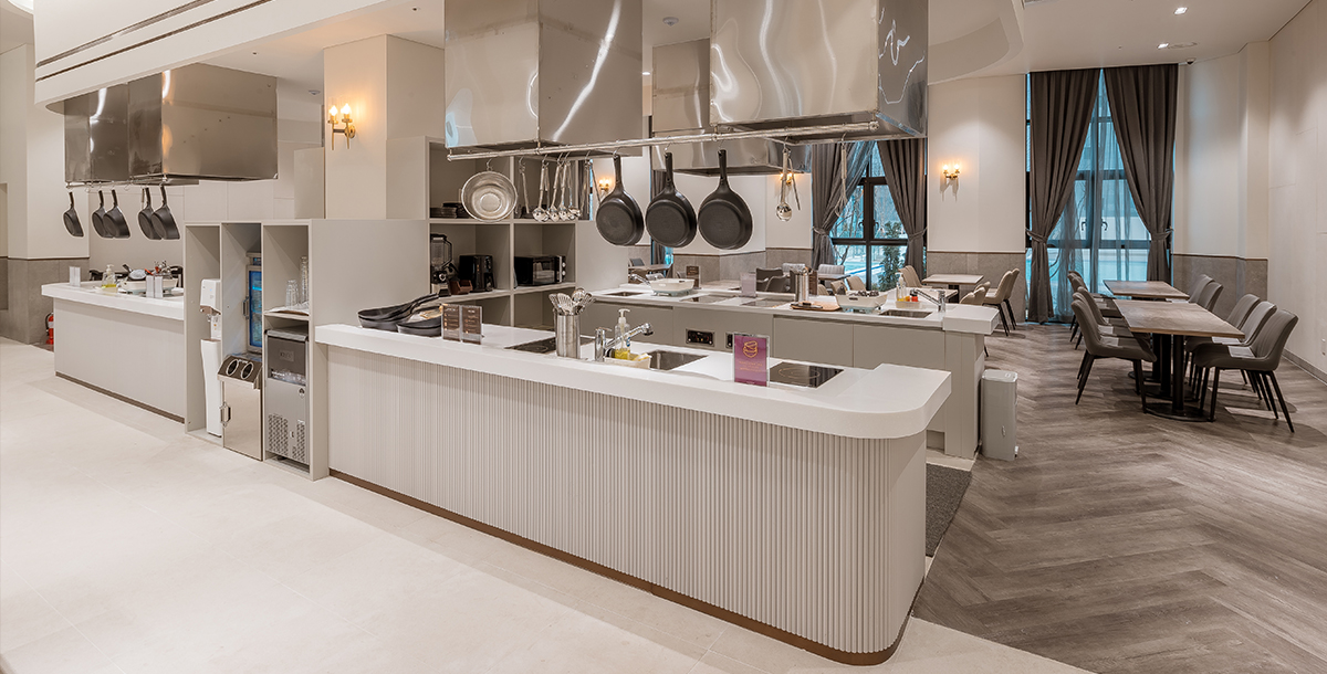 요리공작소 - 문의 : 033 632 0103 / B동 1층 / 투숙객 무료, 미성년자 및 어린이 부모동반 필수, 별도의 예약 운영하지 않음. 밀키트 판매 / 운영시간 08:00~21:00 (입장마감 1시간 전까지), 브레이크타임 16:00~17:00 / 체크아웃 시 부대시설 이용 불가/ 예약제 없음 / 매주 토, 일요일 조식 뷔페 운영으로 인한 이용객이 많아 시설 혼잡 예상 09시부터 이용을 권장