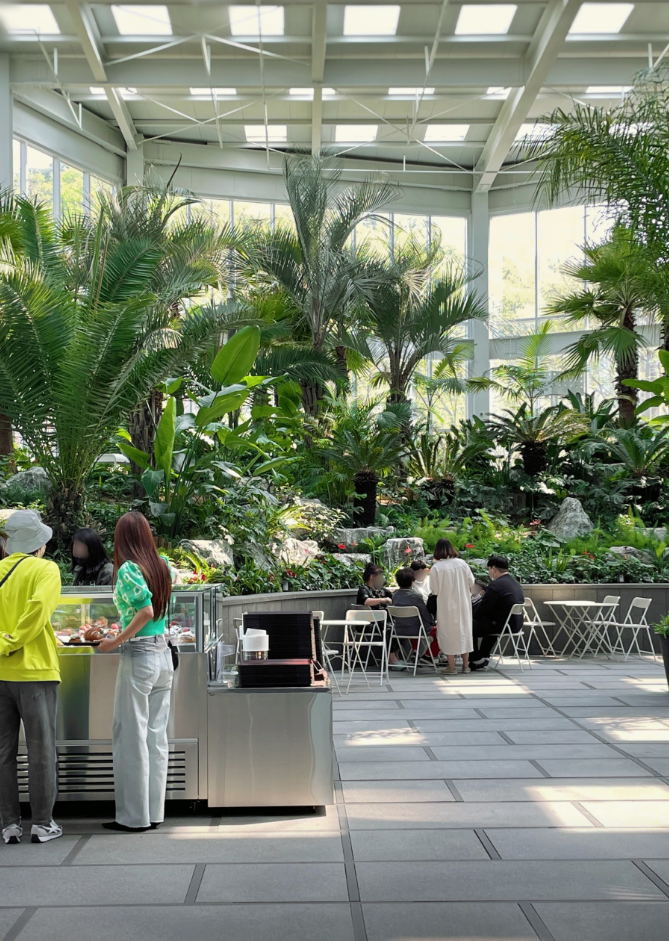 1층에 열대식물들 사이사이에 산책로를 조성하였고 포토존도 만들어져 있습니다.