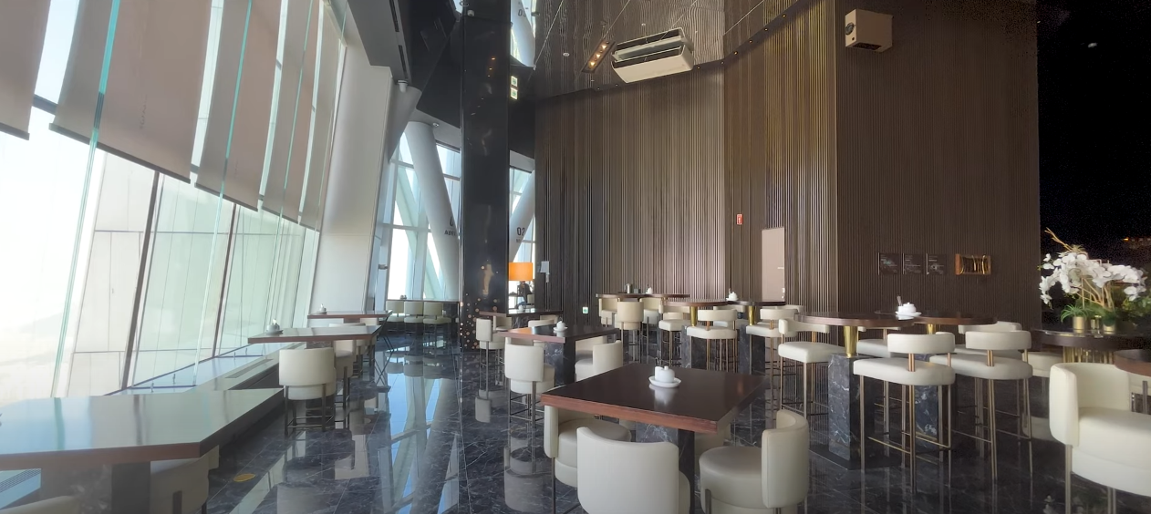 123층 라운지로 엘리베이터를 타고 이동하면 '구름 위에서 즐기는 미식과 여유'라는 타이틀답게 서울 가장 높은 곳에서 최고의 전망과 함께 식사와 분위기를 즐길 수 있는 곳입니다. 높고 웅장한 커튼 월을 통해 막힘없이 최고의 풍경을 자랑합니다. 가격대가 카페에 비해 높게 형성된 메뉴가격 탓인지 다른 층에 비해 한산한 분위기입니다. 높은 층고와 인테리어가 웨딩홀 연회장을 연상시킬 정도입니다. 전반적인 인테리어는 그대로이지만 리뉴얼을 통해 테이블이 바뀌어 사진과 다르다고 합니다. 야경은 더 환상적으로 낭만적인 분위기가 더해져 데이트 장소로도 각광받는 곳입니다. 아메리카노 15,000원 / 인삼차 16,000원 / 에이드 18,000원 수준이며 탄산음료, 에비앙은 10,000원입니다. 파스타, 리소토, 샌드위치는 28,000원 ~ 33,000원 사이입니다. 캐치테이블 어플을 통해 예약도 가능하니 참고해 주세요.